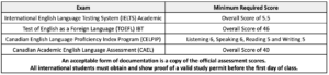 3. Documentation of successful completion of one of the following English Language Assessments, with minimum scores in one of the following: